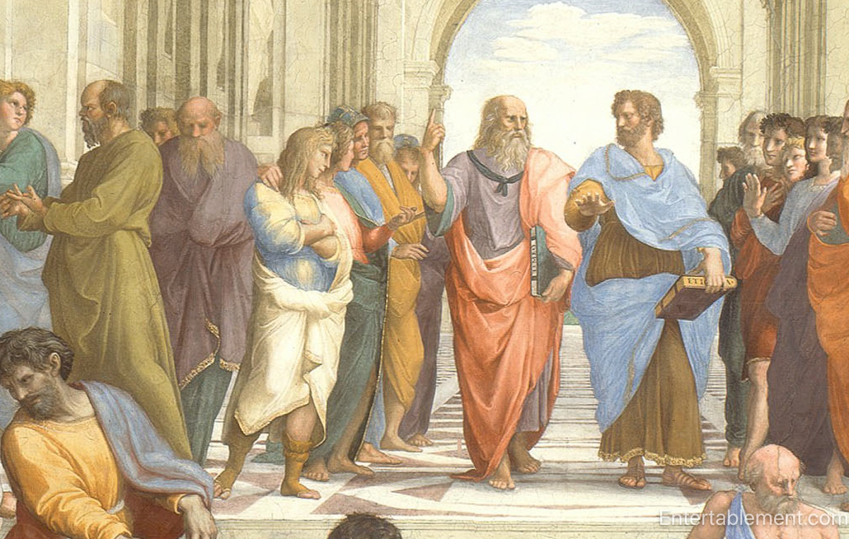 My working impression of Greece was embodied in the Vatican’s fresco The School of Athens by Raphael. In it, Socrates (left) argues in the crowd, Plato points upward toward higher truths beyond the visible world, and Aristotle, his hand held level, grounds philosophy in rational observation.