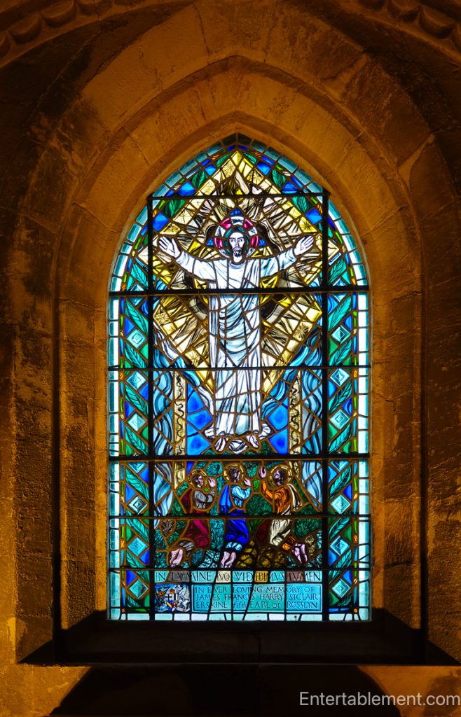Although much of Rosslyn Chapel’s interior dates to the 15th century, its stained-glass windows are a later addition. The chapel’s first known glazing occurred in 1736 when General James St. Clair undertook repairs. However, it wasn’t until 1867 that the 8th Earl of Rosslyn installed the first permanent stained-glass windows. These windows, crafted by Clayton & Bell of London, depict the twelve apostles and biblical scenes.