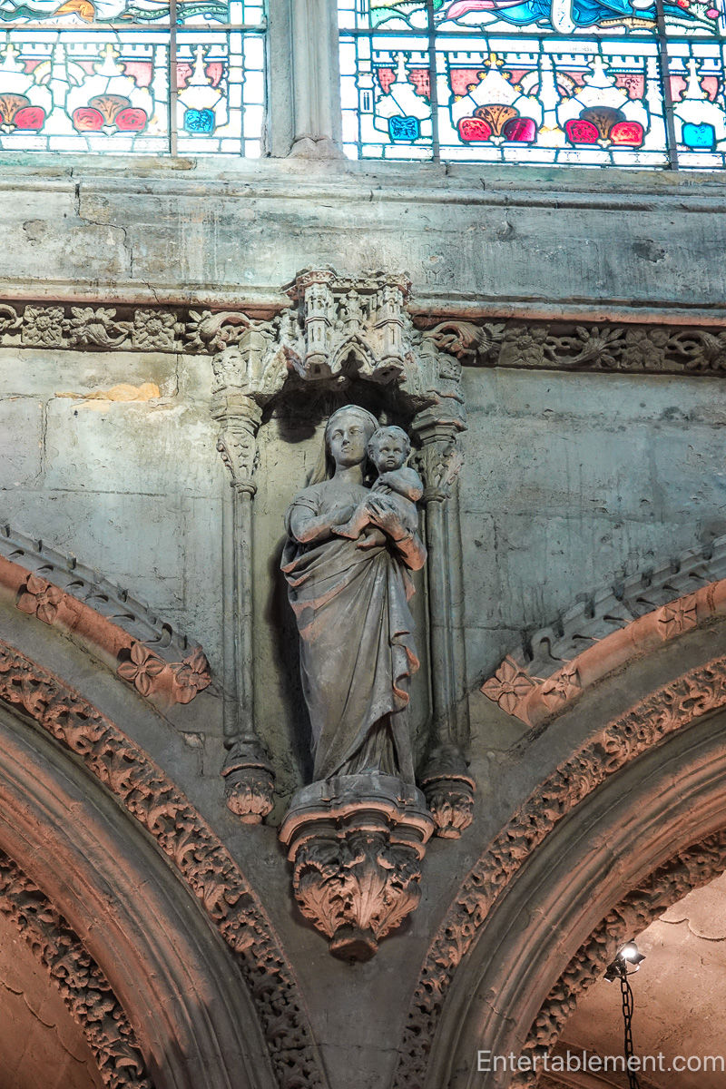 There is no end of detail to admire. One of my favourites was the angel playing bagpipes carved at the top of the Mason’s Pillar.